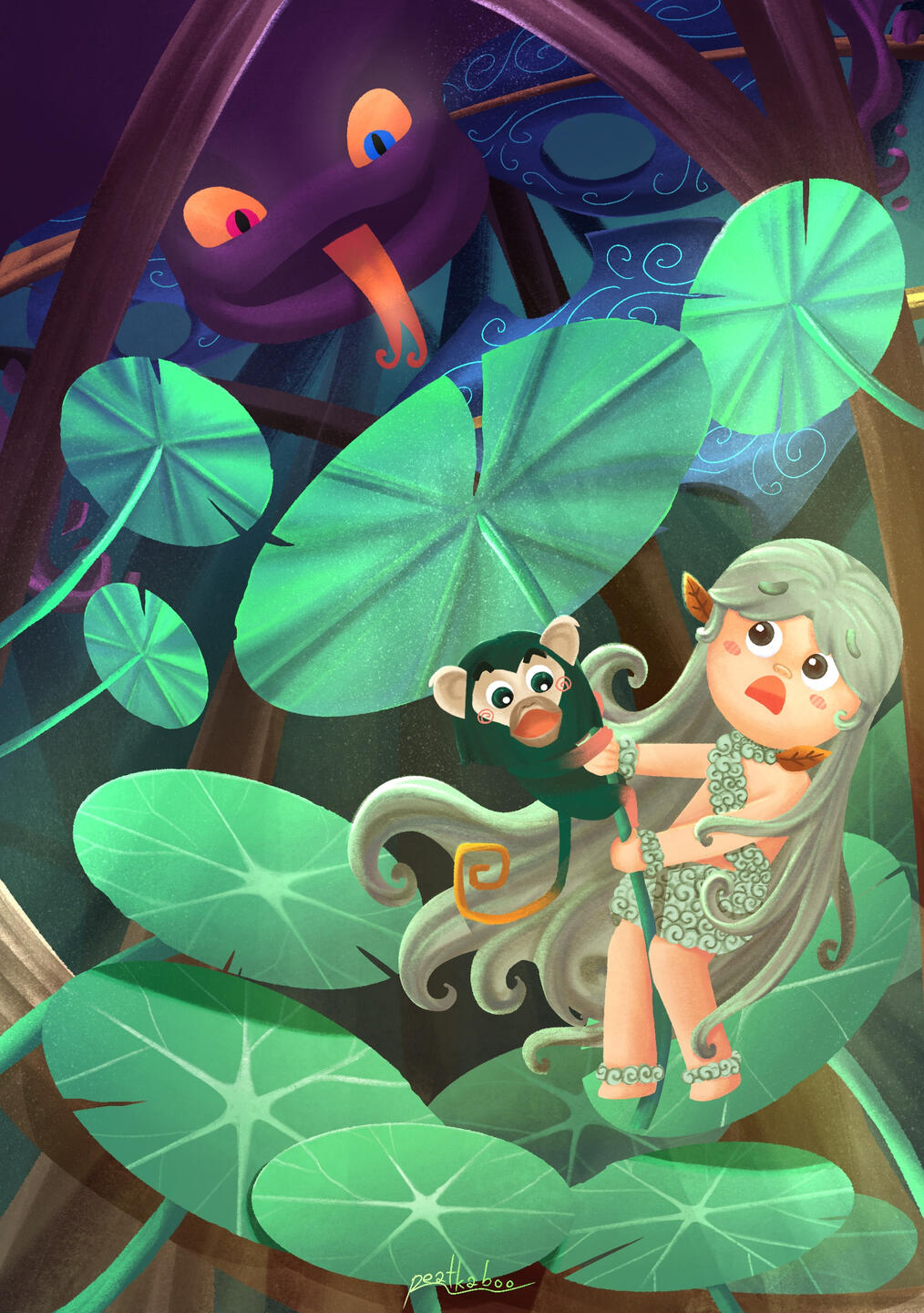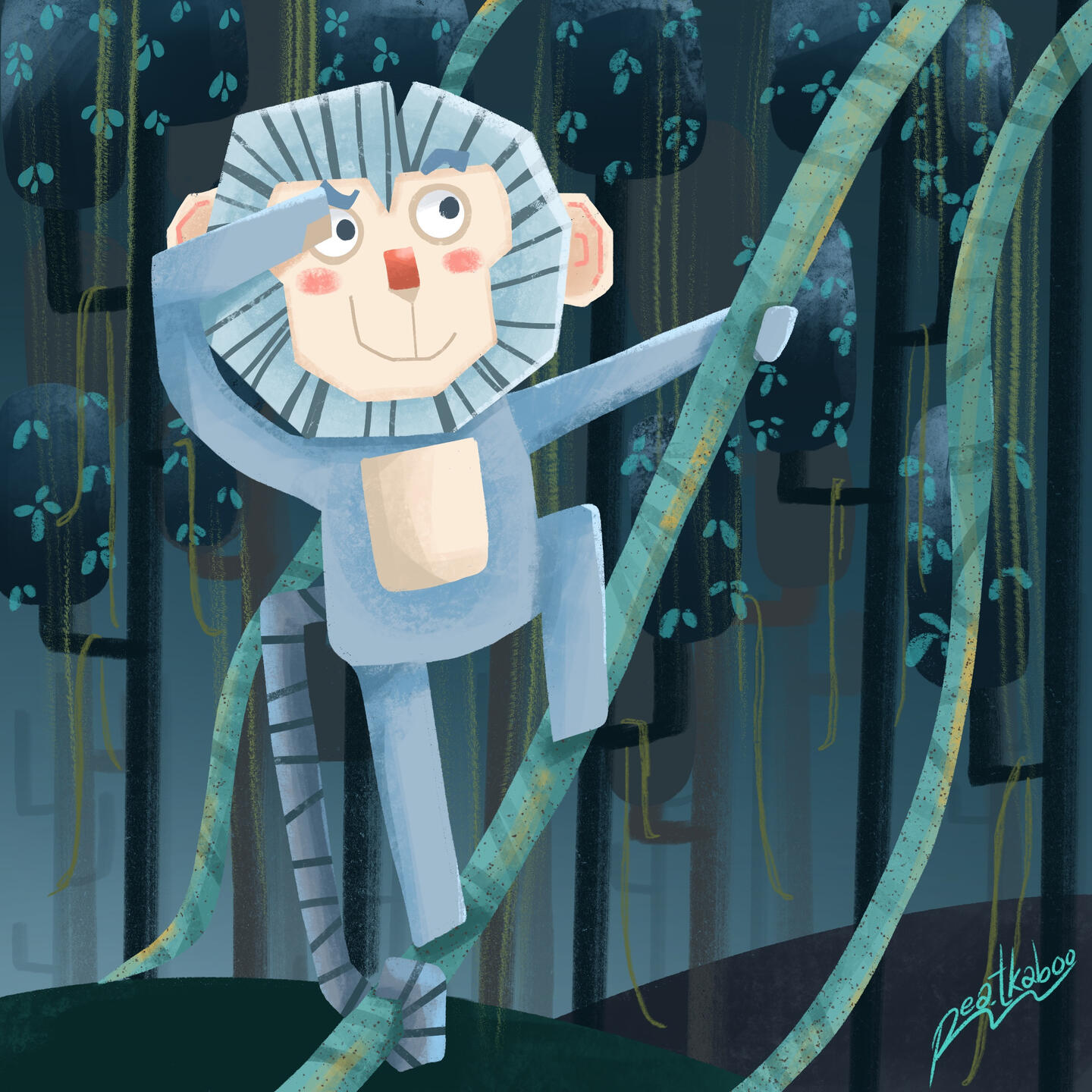 “ลิงน้อยช่างสงสัย อะไรเอ่ยอยู่เบื้องล่าง”